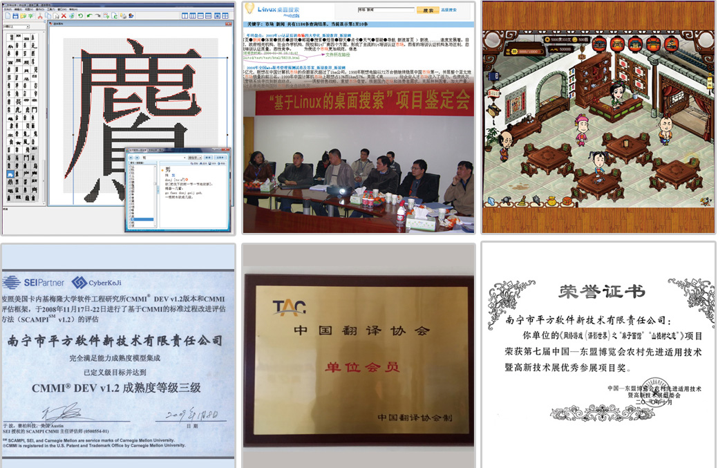 多媒体系统开发及软件产品开发:《壮族》(国家电子出版物优秀奖)、《南宁通》、教育/年鉴光盘、基于虚拟现实的会展交易平台及应用(广西科技进步二等奖)、基于互联网的会展管理系统、海百合教育产品、平方搜索引擎;“平方”、“海百合”注册国家商标;通过国家高企\软件企业\ISO认证;中国软件协会常务理事、中国中文信息学会理事、中国计算机学会数据库专委会委员、广西软件行业协会副理事长、广西计算机学会副理事长、广西电子学会副理事长。
